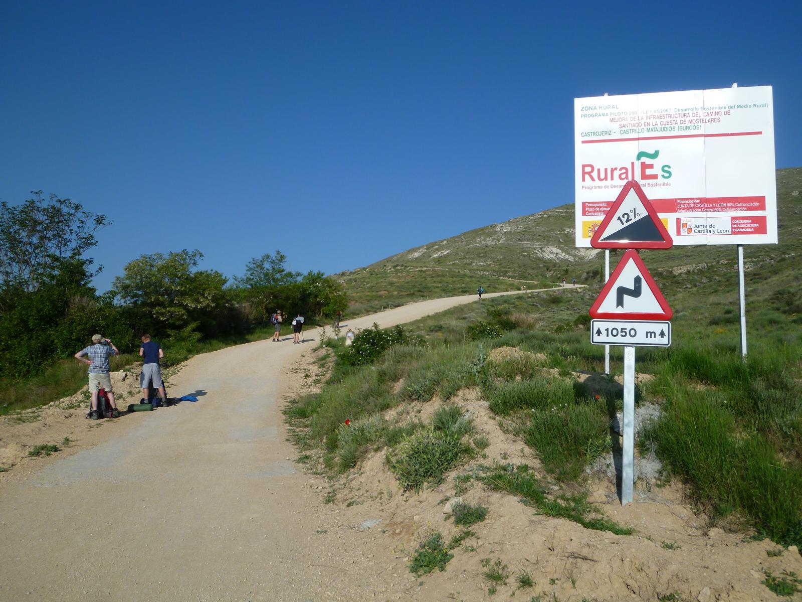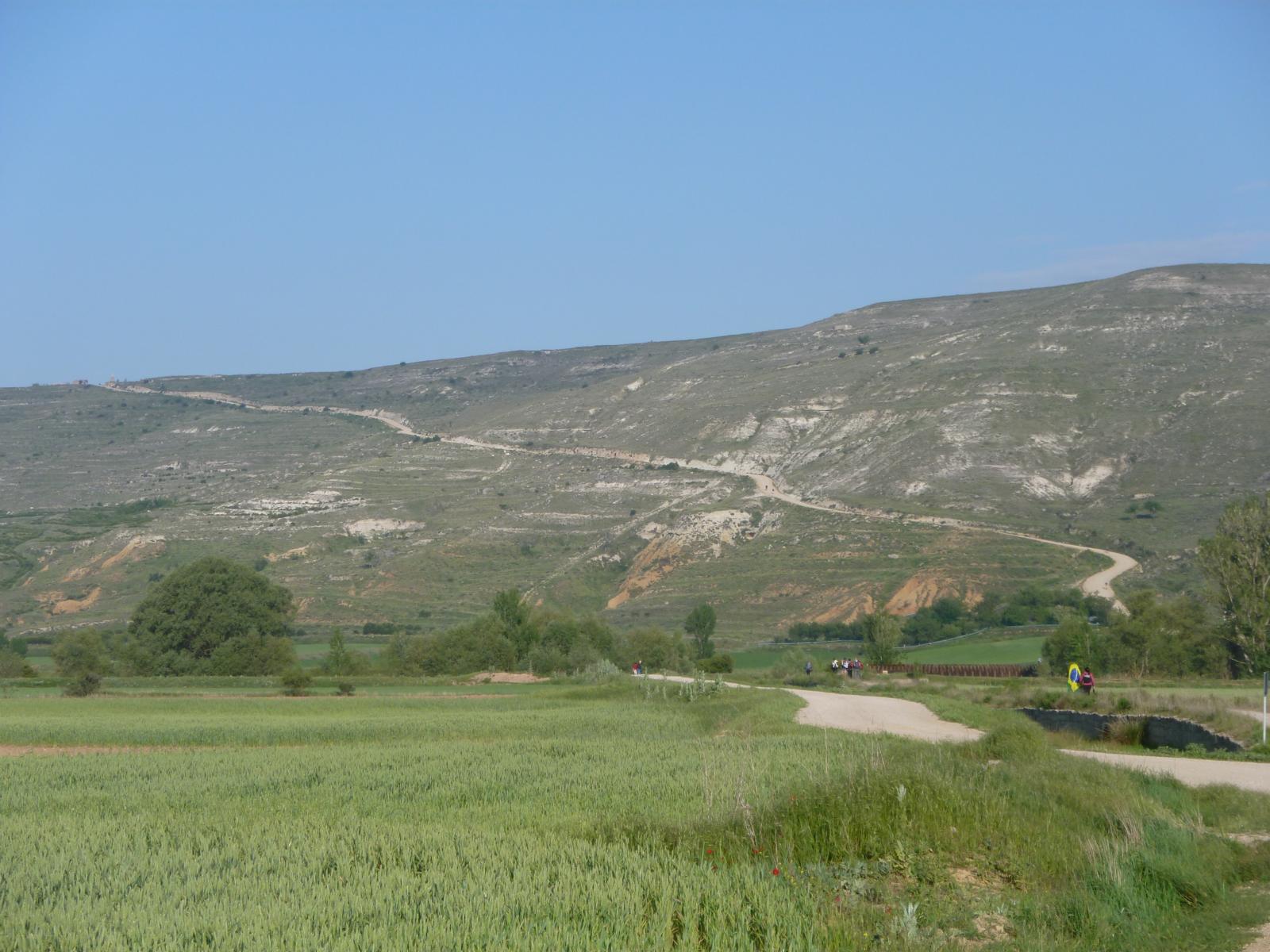 Die letzten 11 KM hatten es in sich, da sich auf der Strecke kein Dorf und kaum Schatten befindet, nur Felder, der Camino und die bruehende Mittagshitze. Meine Fuesse tun weh. Unterwegs habe ich einen Brasilier getroffen, der seine Blase versorgte und kein Wasser mehr hatte. Da ich 2 PET Flaschen mit hatte, habe ich ihm eine davon da gelassen.