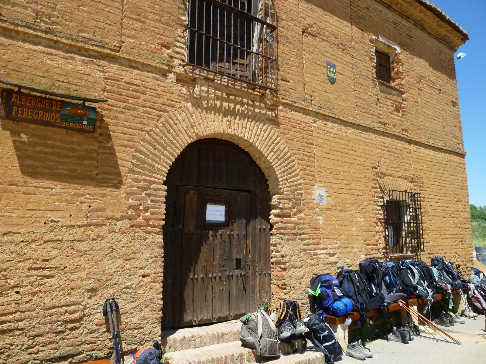 Habe dann noch unterwegs in einem der naechsten Orte gefruehstueckt. Schmerzen bei jedem Schritt – aber noch auszuhalten. 2KM vor dem Tagesziel – Bercianos del Real Camino, konnte ich dann nicht mehr laufen. Starkes Stechen im Fuss. Kurze Pause gemacht und dann im Schneckentempo zu einem Rastplatz vor dem Dorf