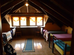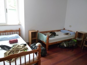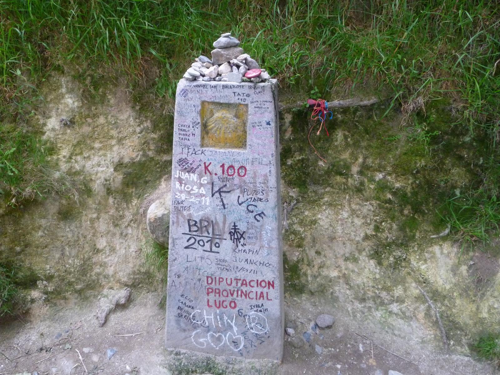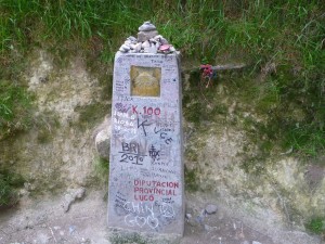 und Fauna sind mit Worten schwer zu beschreiben – ich denke ich wuerde Musikstuecke auswaehlen – es mit Musik beschreiben – das Gefuehl, das „man“ bekommt, wenn man durch diese Natur spaziert. Irgendwann kam ich dann am Kilometerstein 100 vorbei, wobei diese Angaben nicht mehr stimmen soll, weil der Camino mehrmals veraendert wurde. Nun sollte es von diesem Stein 106,8 Km nach Santiago sein. Gegen 19.15 Uhr kam ich dann im „Dorf“ an und ging in das Restaurant, von dem ich annahm, dass es das beschriebene aus meinem Pilgerfuehrer ist, welches ueber gute „Notunterkuenfte“ und anstaendige Sanitaeranlagen in einem sauberen Neubau verfuegen sollte. Anscheinend war ich aber in dem Restaurant falsch, denn die Mitarbeiterin schickte mich zu oertlichen Herberge, wo ich dann auch vorsprach. Dort war jedoch alles belegt und man versuchte mir dann klar zu machen, dass ich irgendwo anders fragen sollte. Ich verstand, dass ich an dem Restaurant, wo ich zu Anfang war, weiter auf dem Camino laufen sollte. Ok, das tat ich auch und nach einigen hundert Metern tauchte dann tatsaechlich das Restaurant auf – das Richtige aus meinem Fuehrer. Ich fragte nach und da waren auch noch genuegend Betten frei – ein sehr grosser Raum – eher eine Halle und nur eine Familie und eine weitere Pilgerin. Und wie beschreiben alles in gutem Zustand, man reichte mir sogar einen Einmalbezug fuer die Matratze. Und das alles gegen Spende. Nachdem ich mein Bettchen schonmal vorbereitet hatte, bin ich erstmal ins Restaurant essen, danach duschen, Fuesse versorgen und schlafen. Heute bin ich stolz eingeschlafen, ich hatte insgesamt 34 KM hinter mir.